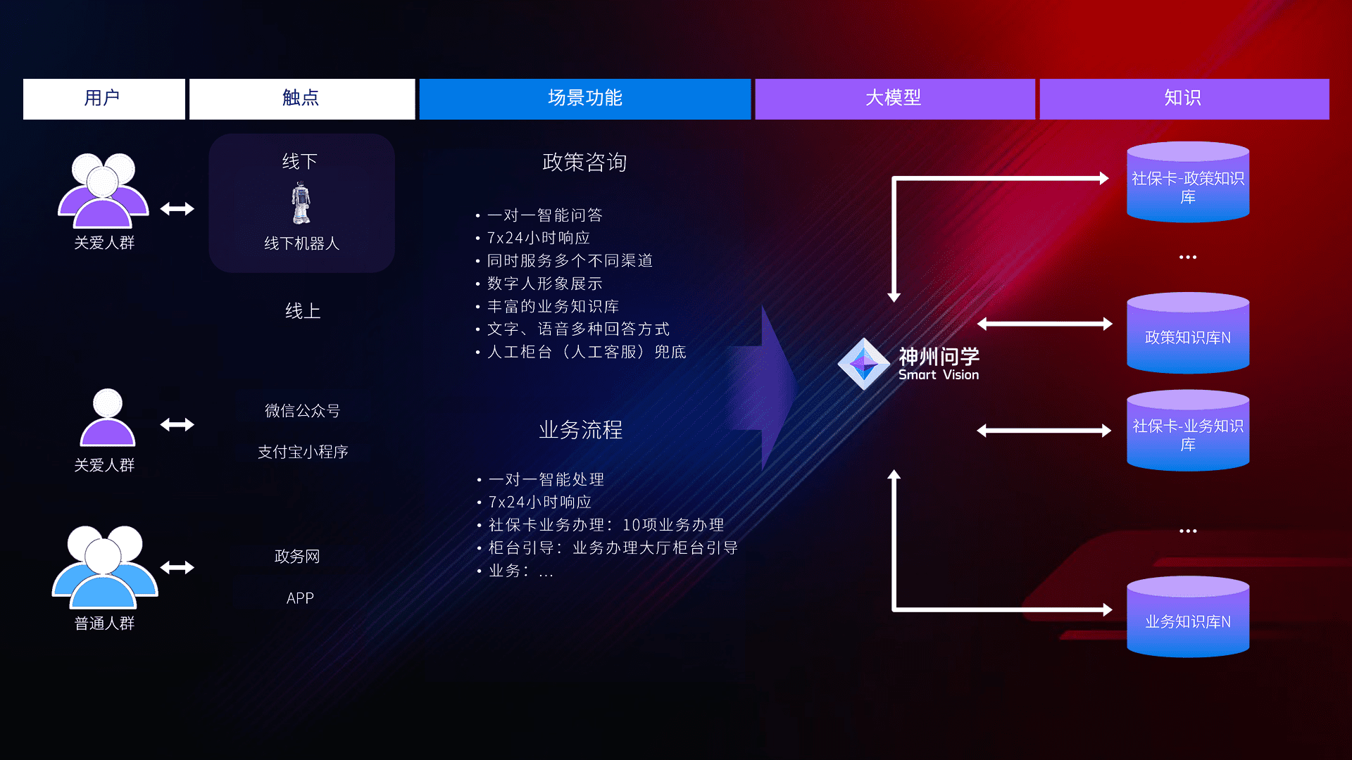 • 线上线下全覆盖:线上提供微信公众号、、支付宝小程序、、、政务网、、、app多种渠道,,,与线下机器人形成完整服务体系。。。